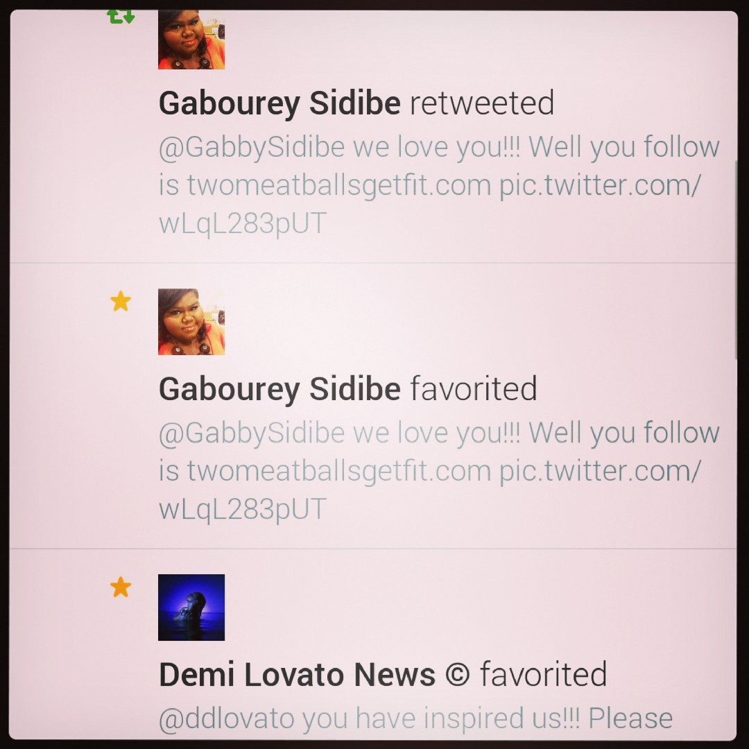 And she fucking RESPONDED!!! What a lovely woman and how amazing for her to take the time to say something so lovely. #arewefamousyet?! Cloud nine feels amazing…it feels a lot like getting healthy with your super best buddy! We have a mission people!!!! We want to find every outlet that will have us so we can speak to the millions of people who feel like being healthy, happy, worthy, sexy, confident or courageous isn’t for them! If we can do this, anyone can do this!!! Ok so enough soap boxing here! In the haste of taking over the world of social media…I’ve made soooooo many autocorrect errors…which is making me sound like the dumbest dumb dumb of all time. Zoom in on the Gabourey post. I SAID WELL YOU HELP IS?! Ugh!!!!!!!! Lesson of the day…slow down, you can’t take it back once it’s on the interwebs! Once again everyone, thank you so much for your support. You honestly have no idea what it means to us. Please help us continue to get the word out by following us in our many endeavors on social media: