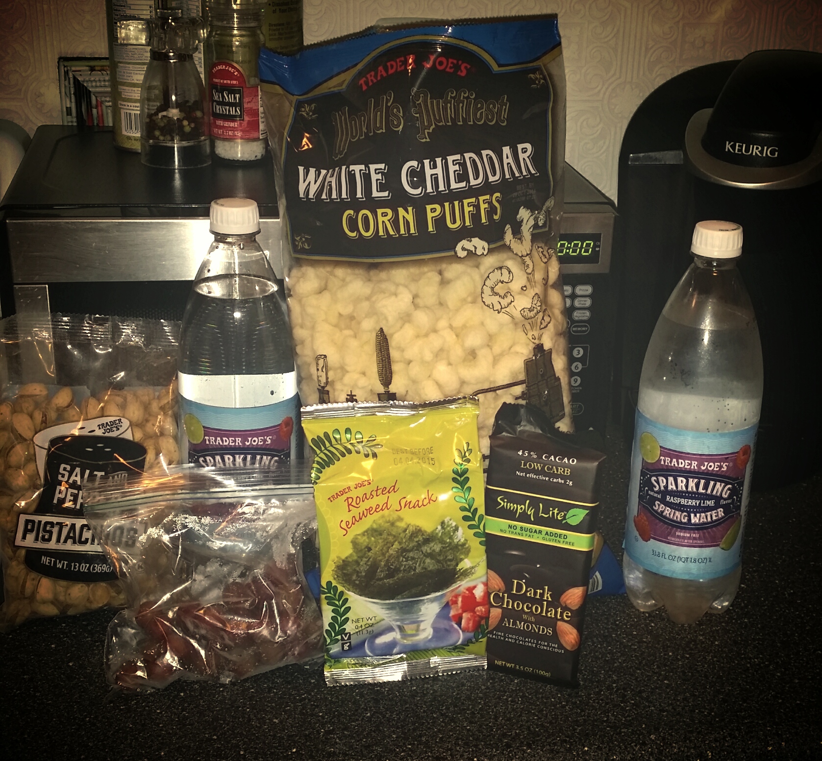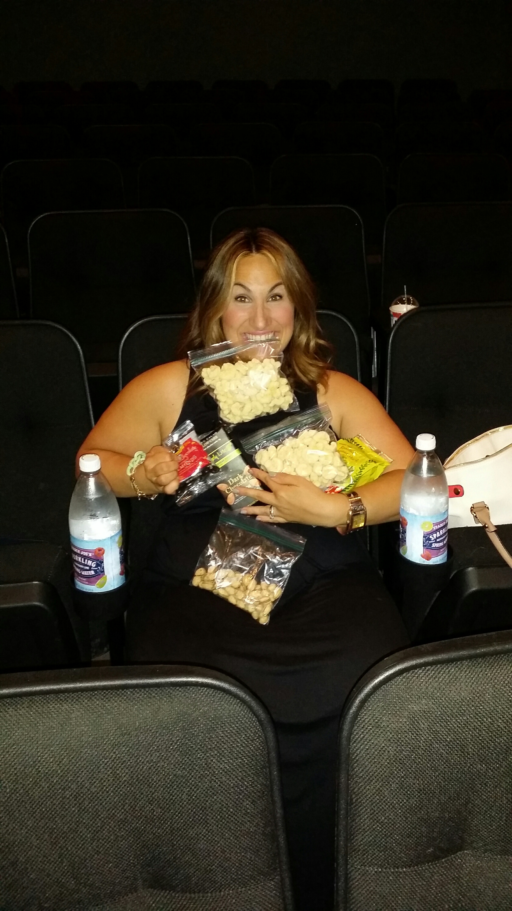 Yay!!! We are wicked smaaaat! But the movies can be a slippery slope…soda, candy galore and fatty fat fat butter popcorn OH MY!!! So we planned ahead and packed some healthy-ish snacks and our new fav Trader Joe’s raspberry lime sparkling water!!!