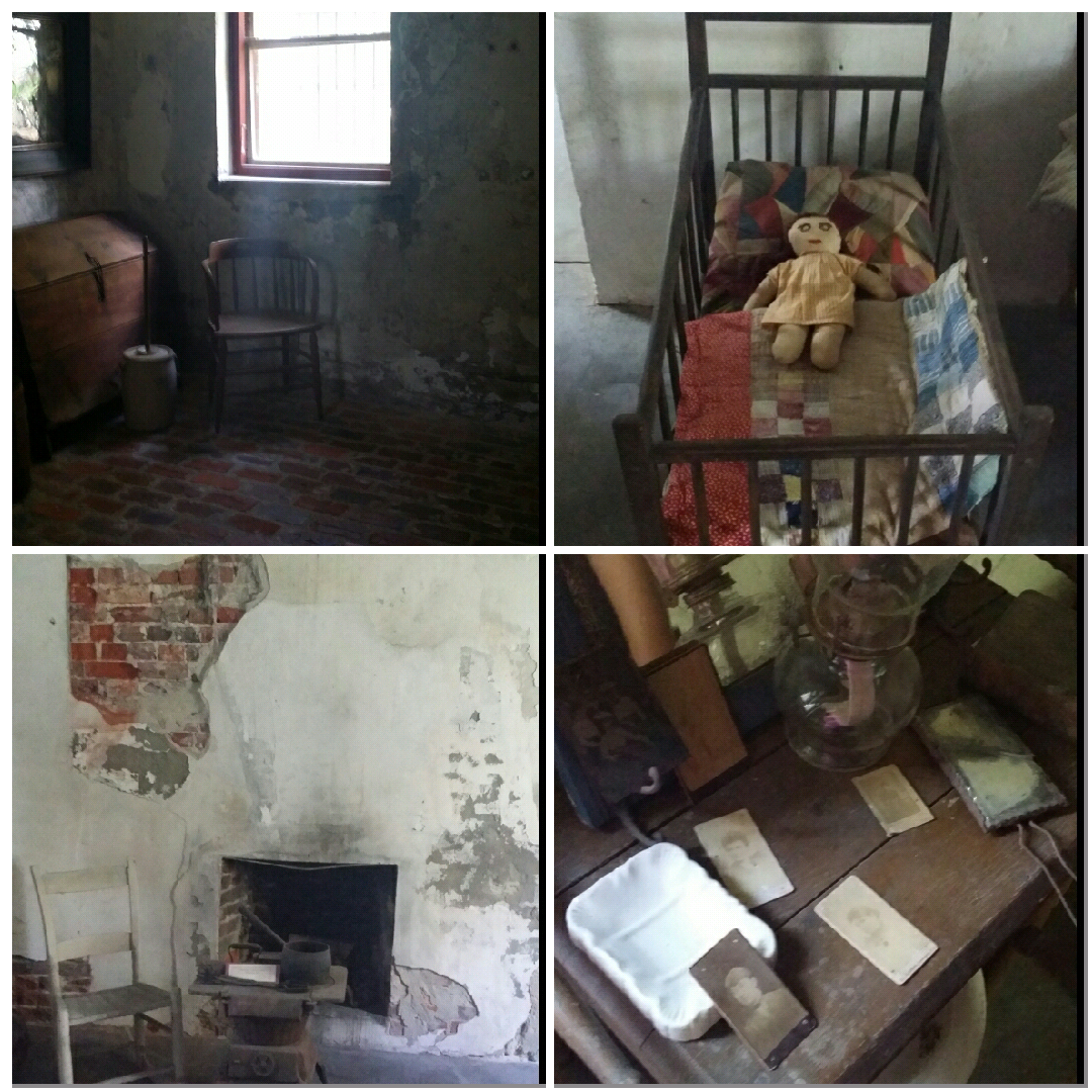 This is a montage of scary things we found in historic homes…the first one is a photo of the professional mourners! ick! The second are two dress forms in an attic we weren’t allowed in and they looked like headless ghosts, the third there is a ghostly image of a little boy forever burned into the wall…eeek! The last image is from an attic where 10 children lived and paranormal investigators said there was LOTS of activity up here!!!!