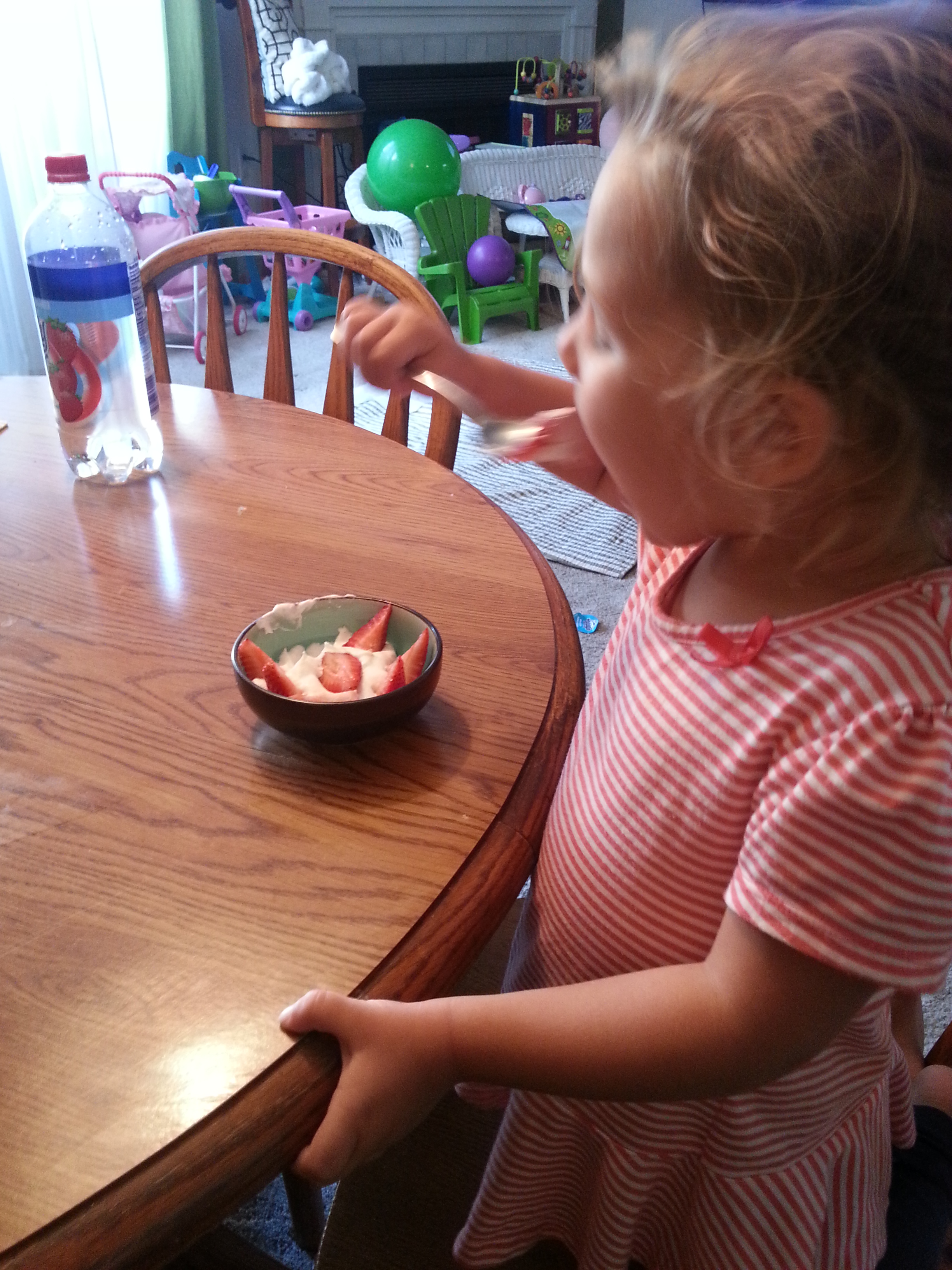 And she loved them! High fiving all my mom friends!!!!! It is a total victory when kids get a veggie down without the drama. And then we finished the evening with strawberries and coconut milk whipped cream……..Aaaaaaaaamaazing!