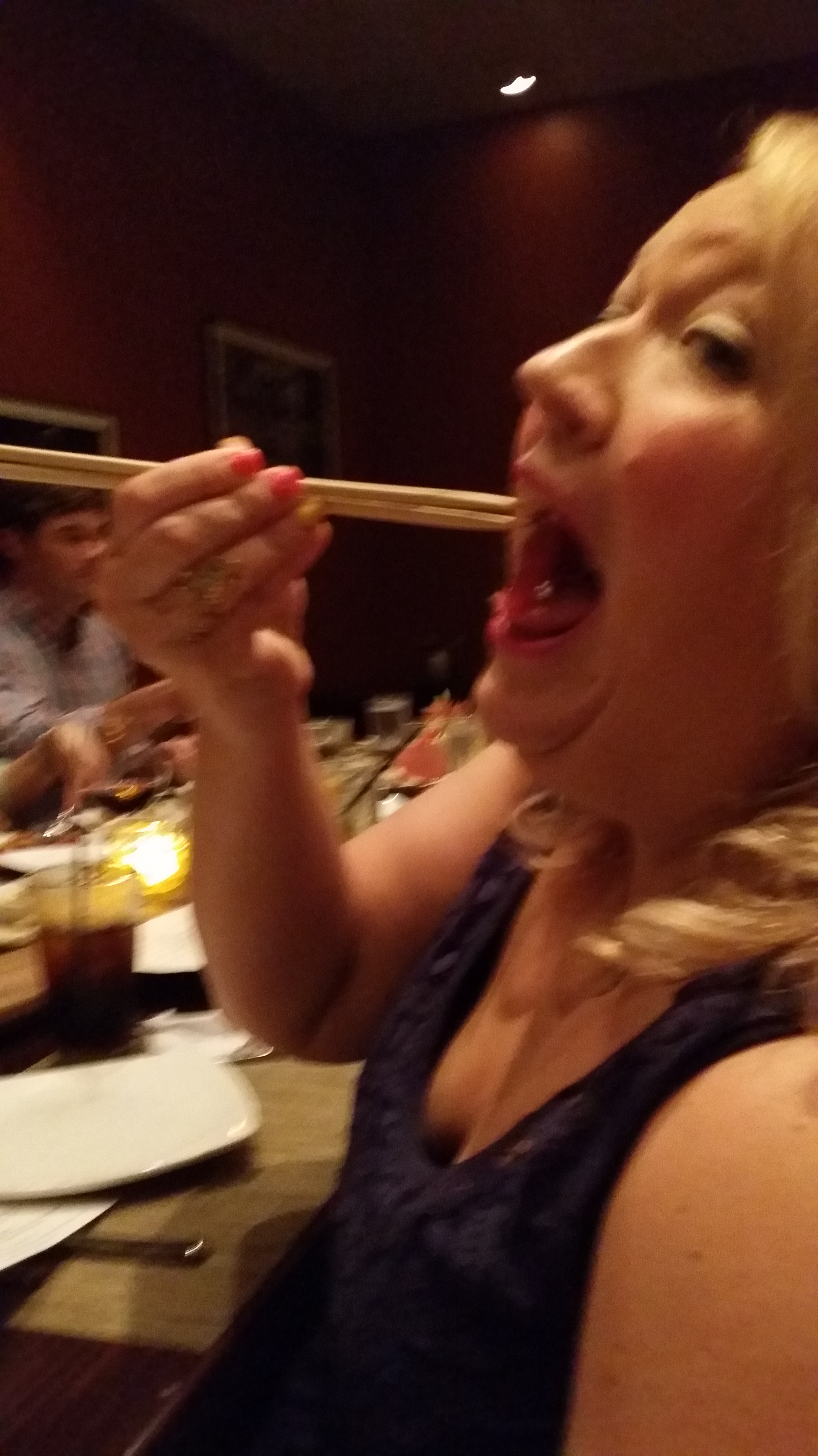Then Michelle’s watermelon drink exploded seeds through her straw…this is a pic of her saying, “This is not pleasing in the mouth!” Bahahahahaha