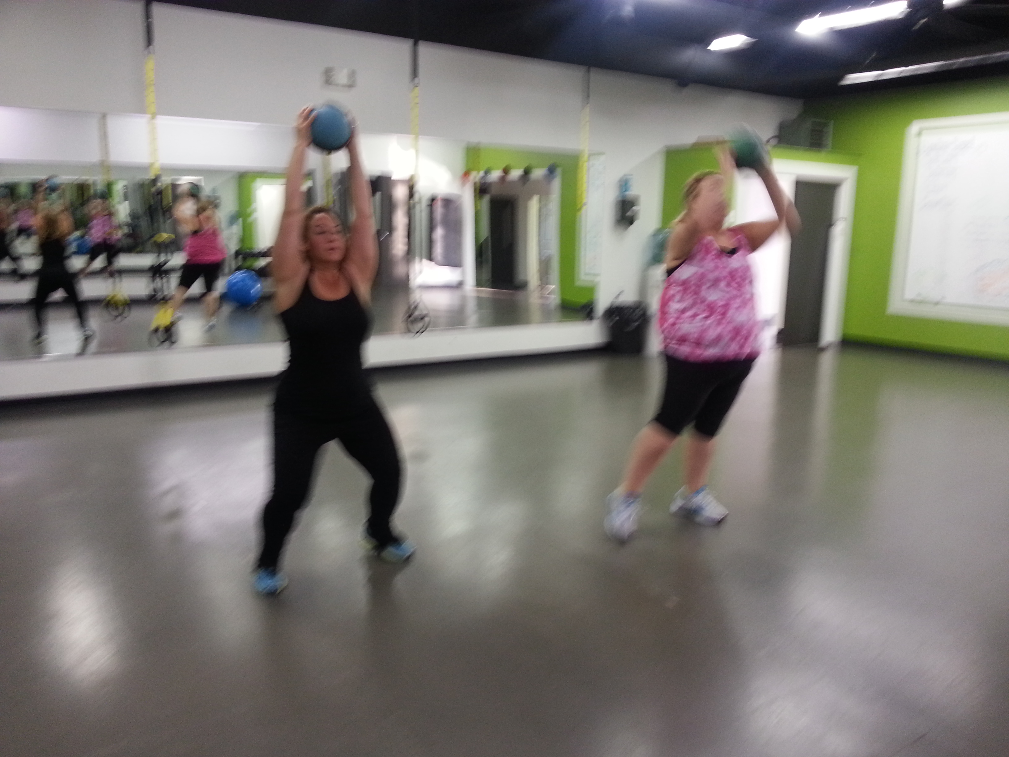 Soooo on to the warm up….jumping jacks with a weighted ball and twisty turns?!?
