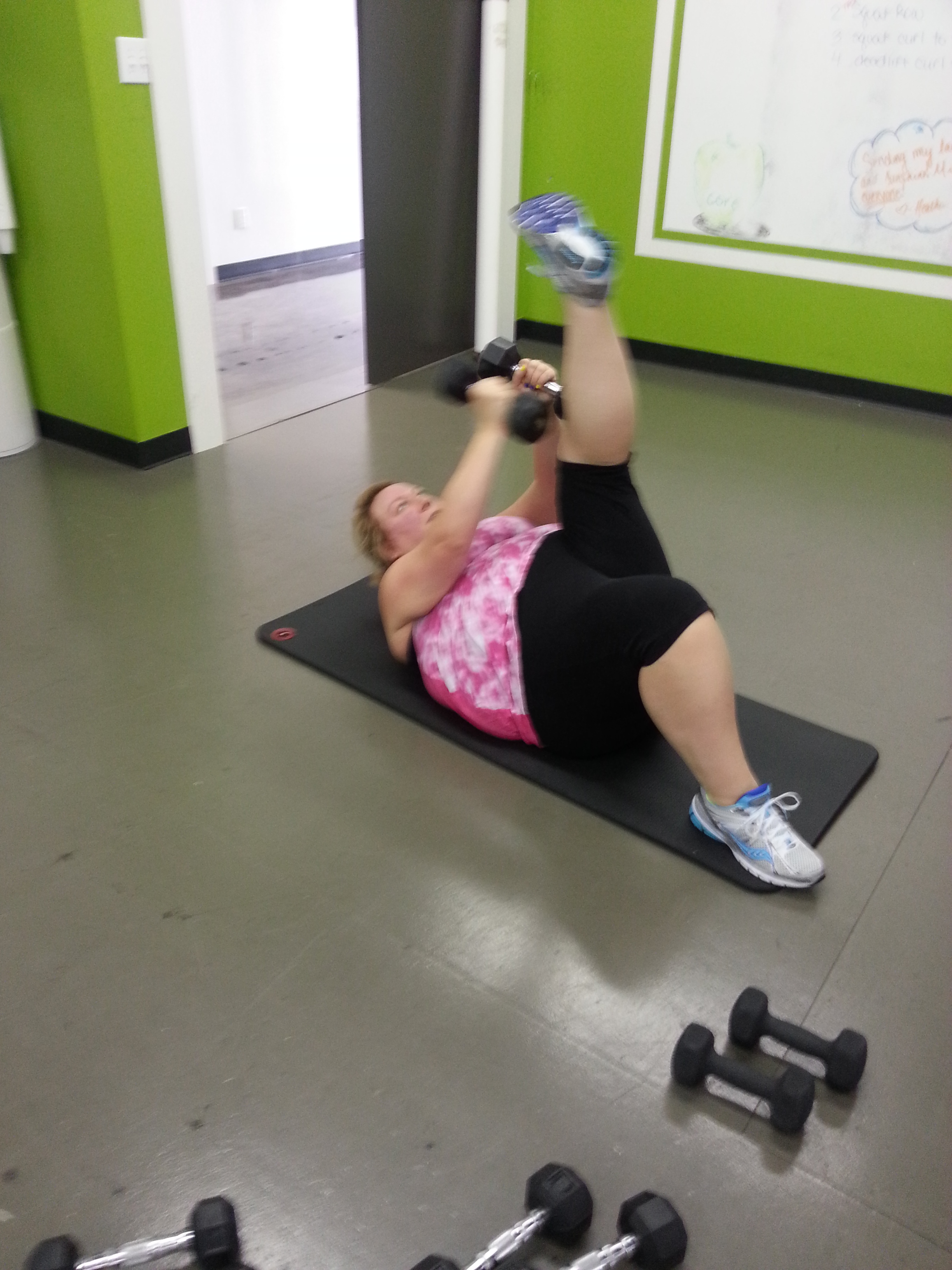 Break!!!!!!! Time for our cores!!!! Sorry no pics ….. Crunches, side heel taps, and then high sit ups.
