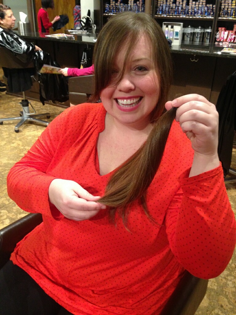 I also recently had a new guest at the salon…Blair!!!!!!!!!! She reads the blog and decided to come see see me at Samuel Cole!!!! So exciting….I couldn’t wait to meet her!!!! And we did a major change. She donated her hair to locks of love. An absolutely fantastic charity. I was honored to do it.