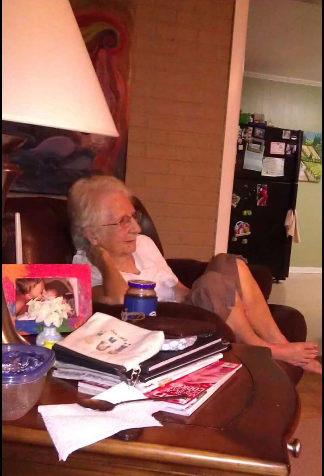 we played dominoes and Old Maid and war and we climbed trees and went for walks and spent countless hours at the park across the street, we explored every single graveyard Little Washington had to offer, we would explore everything, we would lay in the hammock, play in the bird bath, sleep on the back porch, eat everything in sight, play in whatever camper, rv, tent or elcomino they had at the moment, we played with grandpa’s Sears truck, circled our Christmas wishlist in her Sears catalogue, helped make tea in the awesome pitcher with old ads on it, we had our own sippie cups and tiny forks and spoons, we painted those stained glass looking window hangers, we sang,  she read to us, and she told us so many stories.  We were never treated as less because we were children.  She would let us sit on the porch and listen to hours of stories with the grown ups.  She would let us help cook. If we wanted to try coffee…so be it!  Kristina and I wanted to learn how to play the piano, so she bought a book with the notes labeled and then bought alphabet stickers and labeled the keys!  We would spend hours, the three of us on that piano bench learning to play and singing Bicycle Built for Two.  There was lots of singing and music and talking and joking. Everyone mattered. She always had Juicy Fruit gum in her purse…she called it Juicy Poot.  She was a gassy bird and her trumpet farts kept us all in stitches.   She would braid our hair and put giant puffy yarn balls in them and call them Grandma Plaits.