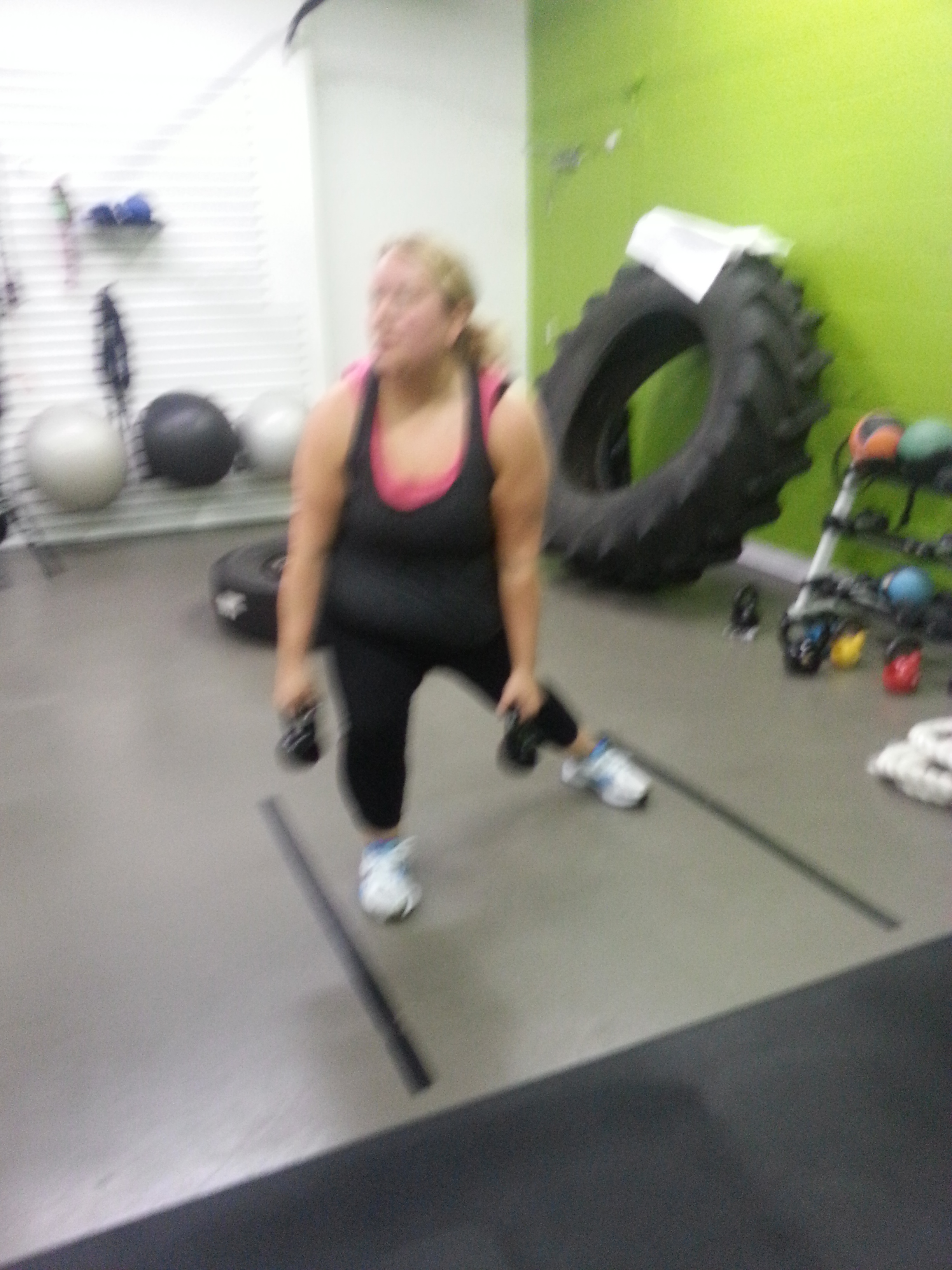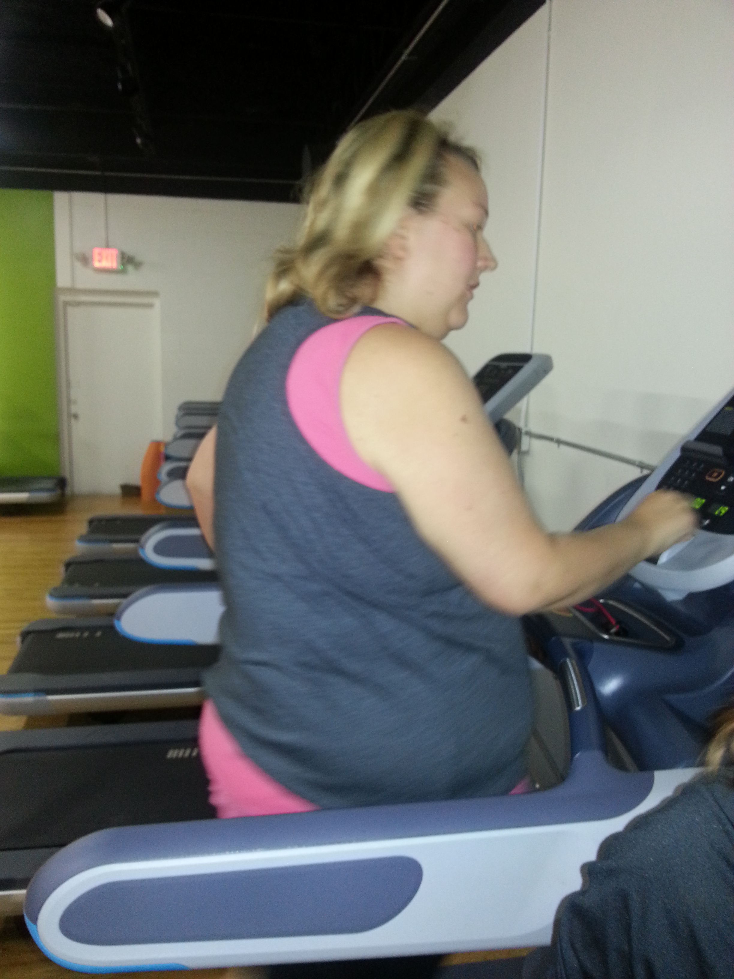 Ready to sweat!!!!!so I warmed up with a five minute jog on the treadmill……. Woolf, already feeling it!!!