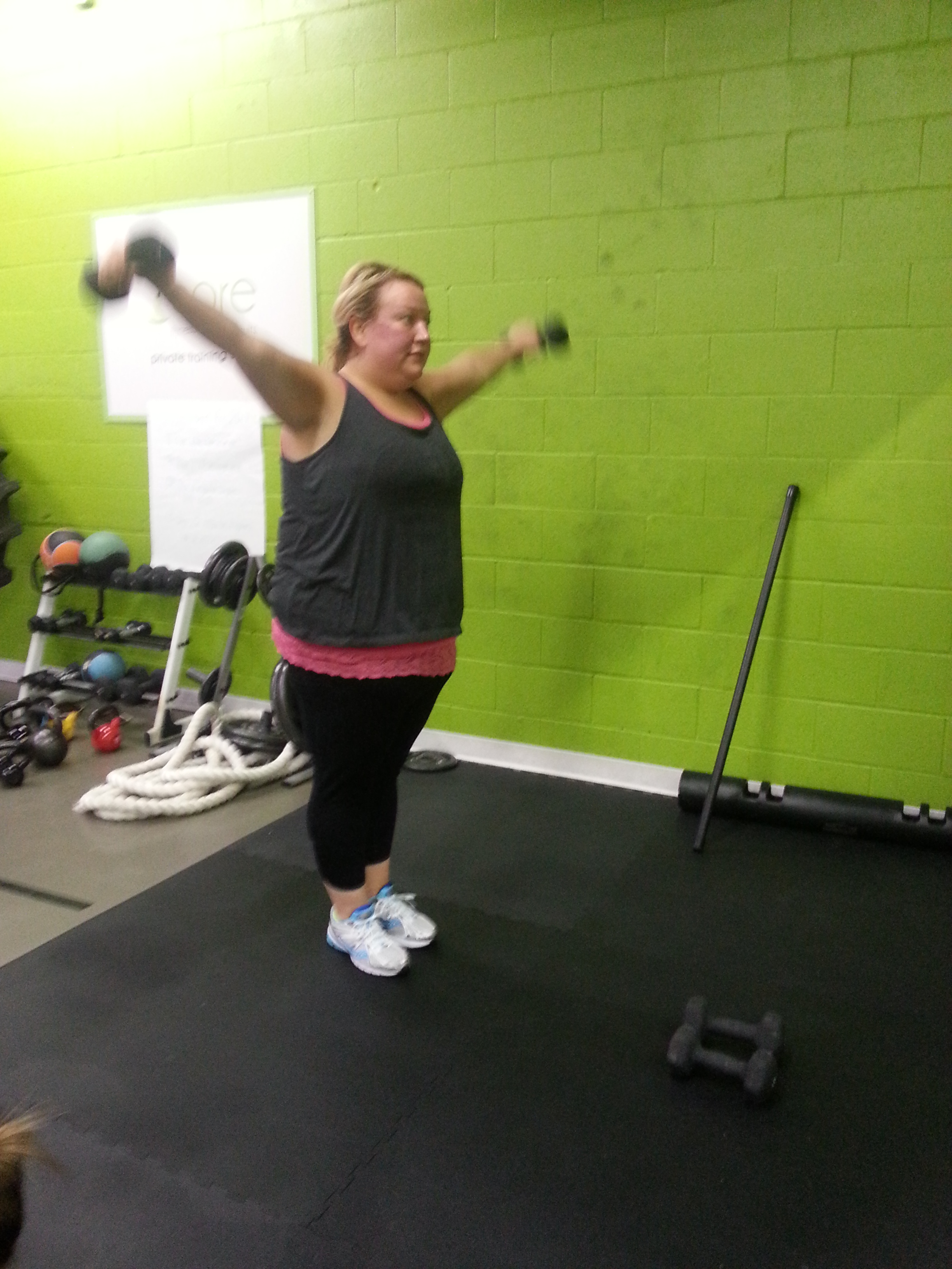 I did this sequence 4 times.  Then 10 lbs an arm, clean presses.