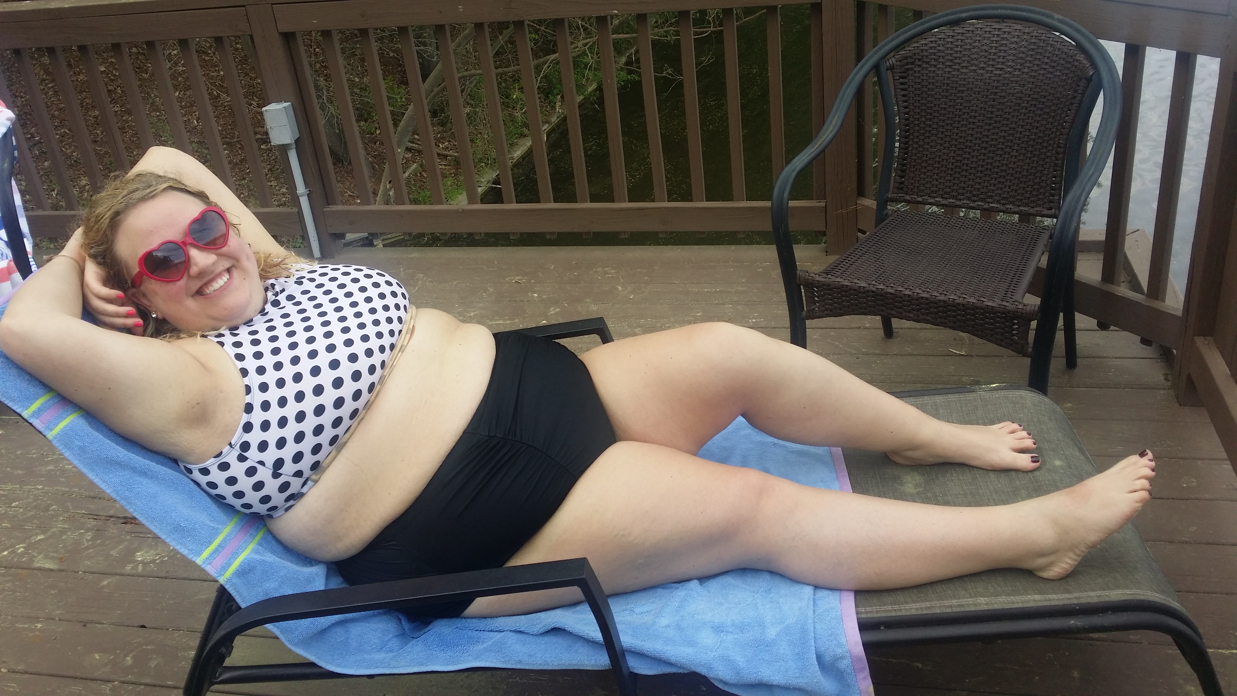 I was teaching water aerobic classes to my family and doing circuit training everyday. While everyone else ate shrimp Alfredo pasta, I made Paleo shrimp and girts with mashed cauliflower. I brought my scale with me and I ran up the stairs every single time. This weekend at the lake I ate carrot cake, cheese-its, ice cream, burgers, pizza…whatever the fuck I wanted and the most active thing I did was walk to the dock to lay out or climb the stairs to go to bed. #dammmit